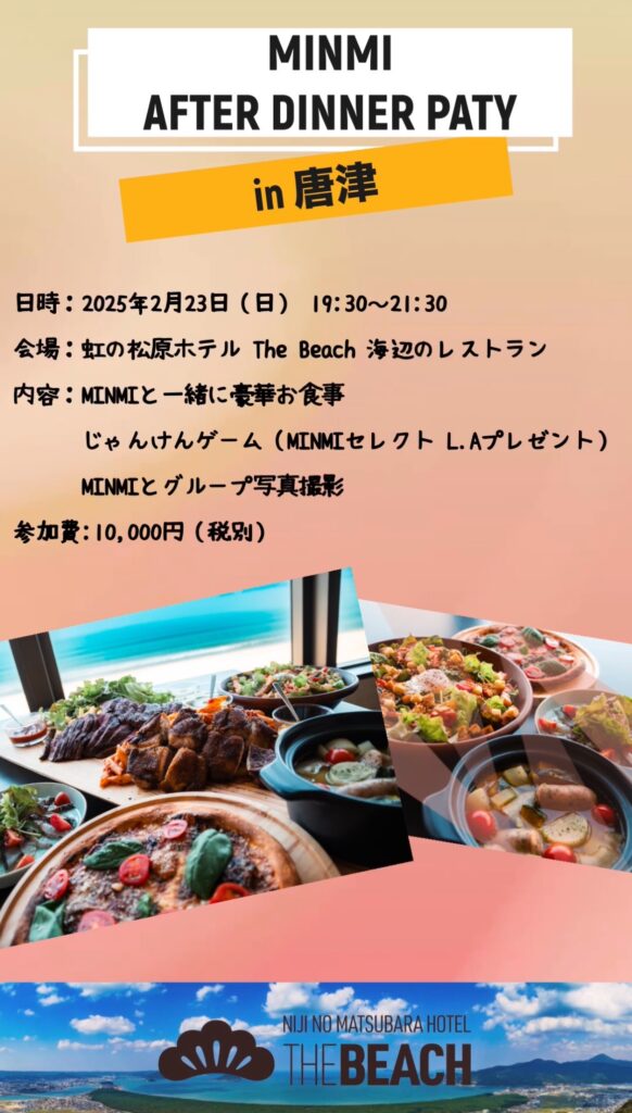★唐津公演後に、MINMIと一緒に過ごせる「アフターディナーパーティー」開催決定!★